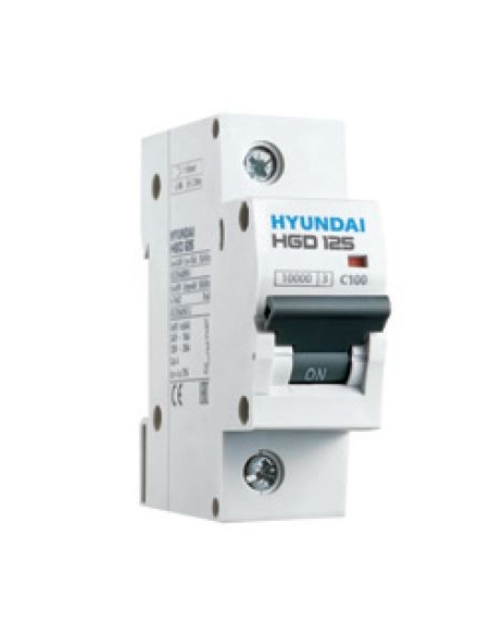 Magnetotérmicos 1 polo alta intensidad, 80 a 125A, poder de corte de 10kA. Marca Hyundai.