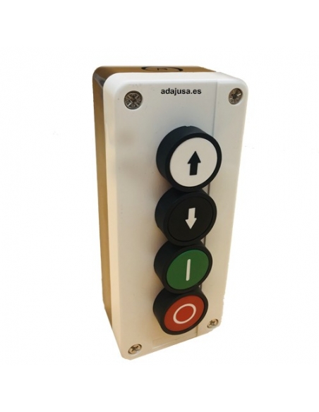 Caja con pulsadores de marcha (I) y paro (O) completa. Caja fabricada y pulsador fabricada en plástico color blanco-negro. El suministro incluye: Pulsador completo color verde. Pulsador completo color rojo. Contacto abierto. Contacto cerrado. Caja en plástico para 2 elementos. La botonera se suministra montada.